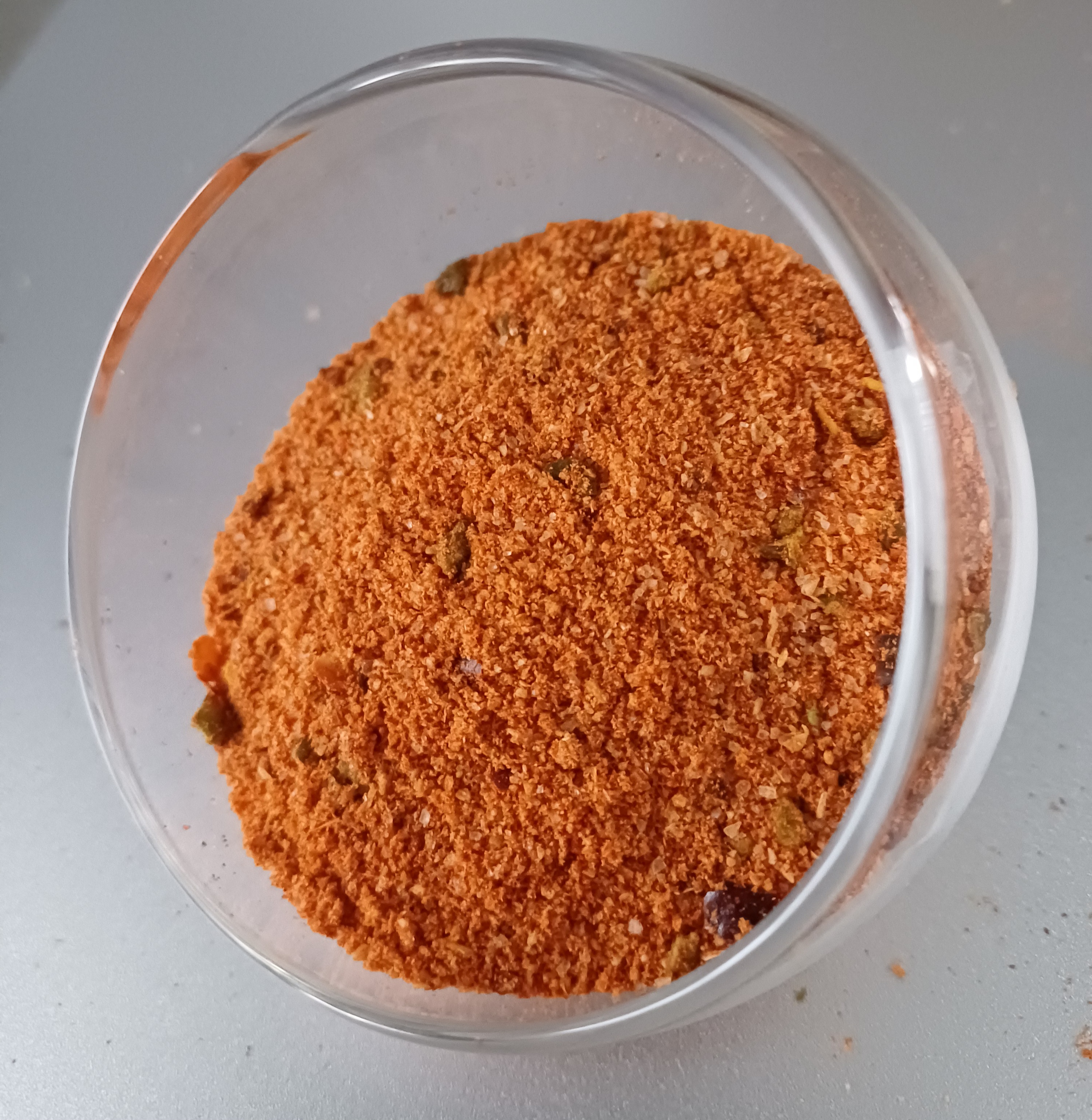 Würzsalz: Gewürze (Chili, Paprikapulver, Zwiebel, Knoblauch, Liebstöckel, Schabzigerklee, Ingwer, Bockshornklee), Speisesalz, Maltodextrin, Färbendes Lebensmittel: Paprikaextrakt, Chiliextrakt.